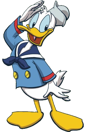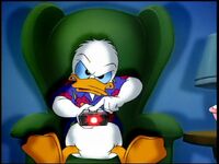 Donald Fauntleroy Duck is a supporting character on DuckTales and one of the main characters on Quack Pack. He is a white anthropomorphic duck whose most famous personality trait is his easily provoked and explosive temper. He has starred in many cartoons and comics produced by The Walt Disney Company, having originated as a supporting character in the 1934 Silly Symphony The Wise Little Hen. He soon rose to become the studio's major star, eclipsing Mickey Mouse in popularity and starring in more than 100 theatrical cartoons through 1961. He was also a major star in comics (gathering an equally popular array of co-stars such as his nephews Huey, Dewey and Louie and uncle Scrooge McDuck), and remains an active figure in Disney television shows, comic books, and countless shows and parades at the Disney theme parks.